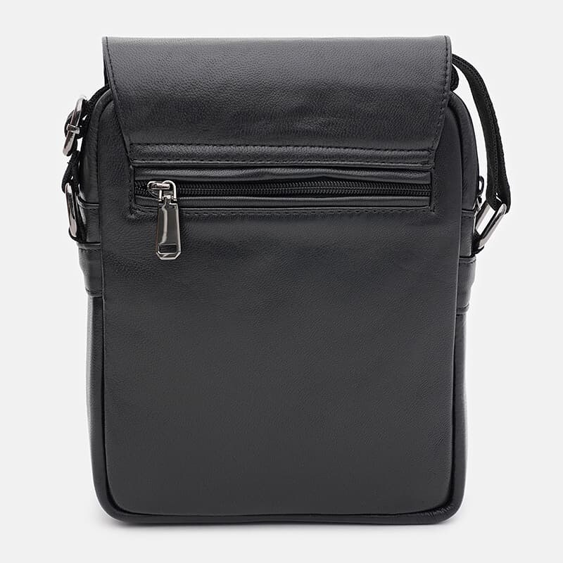 Стильная сумка в черном цвете из турецкой кожи. Закрывается на клапан с магнитом. С лицевой стороны 1 карман, с тыльной -1 карман, внутр 2 кармана для телефона и мелочей. Подкладка текстиль. Несъемный плечевой ремень регулируется по длине.