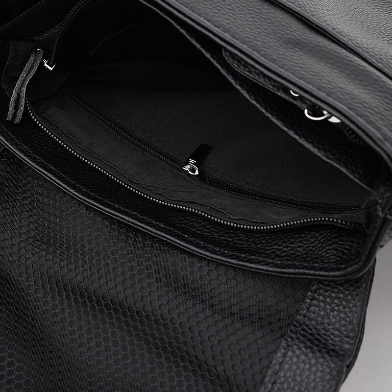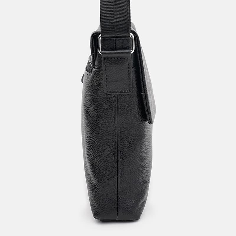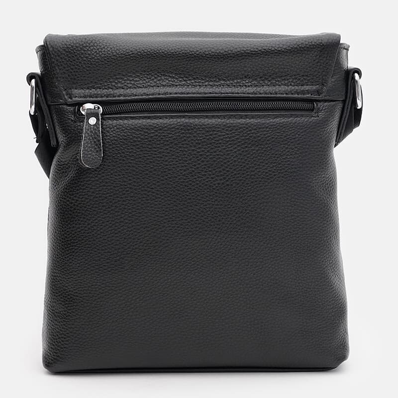 Мужская кожаная сумка закрывается на перекидной клапан. Внутри 2 отделения, которые закрываются молнией. Внутри отделов 3 кармана для телефона и мелочей. Снаружи сумки глубокий карман на молнии. Подкладка текстиль. Плечевой ремень регулируется по длине.