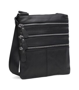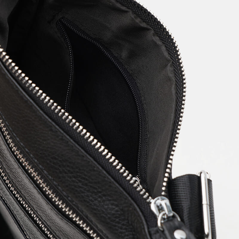 Сумка выполнена из натуральной кожи. Имеет 1 отделение на молнии.Внутри 1 карман на молнии. Снаружи 4 кармана на молнии. Подкладка- текстиль. Плечевой ремень регулируется по длине.