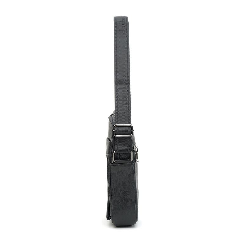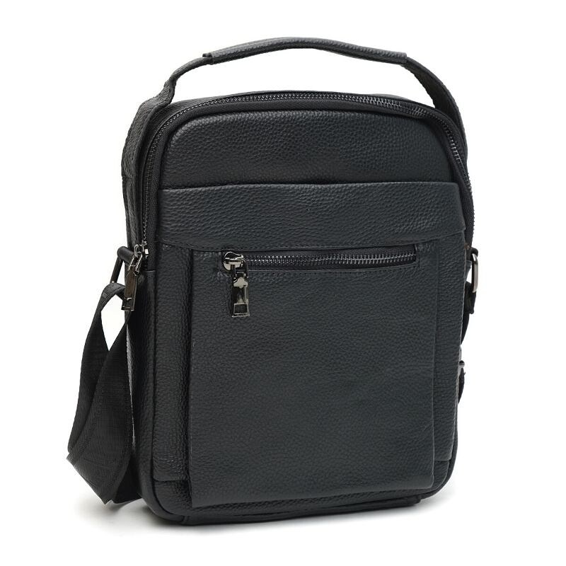 Мужская кожаная сумка выполнена из натуральной кожи. Имеет 1 отдление на молнии, внутри 3 кармана для телефона и мелочей. Снаружи 1 накладной карман и 2 карман на молнии. Подкладка-текстиль. Цвет фурнитуры серебро. Текстильный плечевой ремень регулируется по длине.
