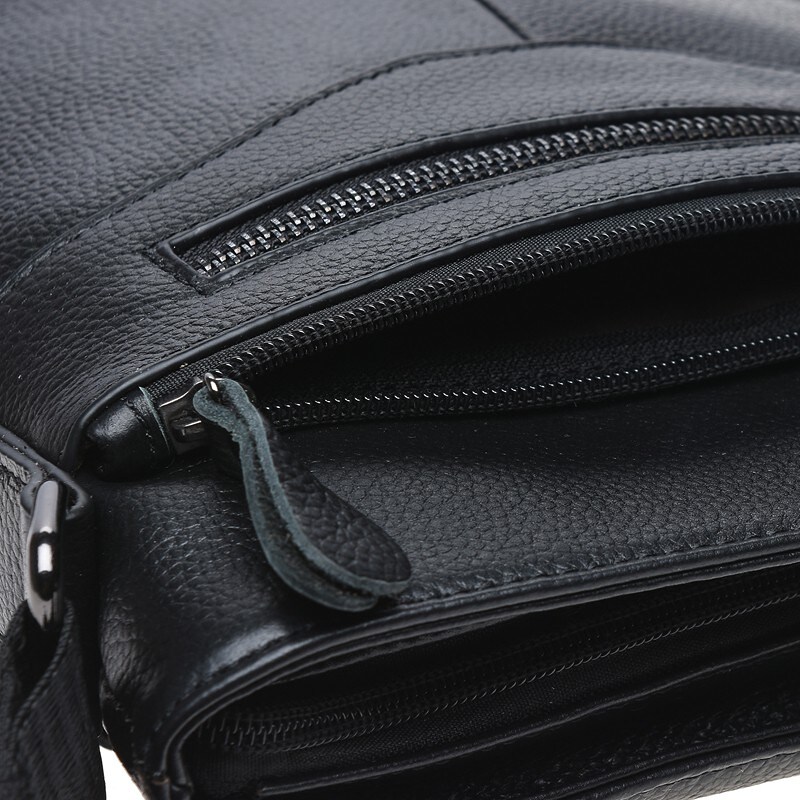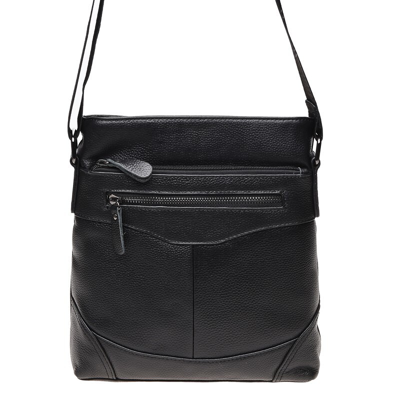 Современный дизайн, четкая форма и оптимальная вместительность-отличный вариант кожаной сумки для современного мужчины. Закрывается на молнию. Имеет одно основное отделение. Внутри 1 карман на молнии и 2 кармана под другие мелочи. Снаружи -3 кармана на молнии. Подкладка-текстиль. Цвет фурнитуры-серебро. Плечевой ремень регулируется.