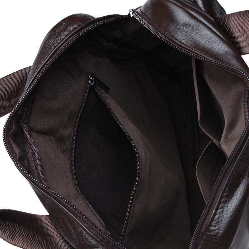 Мужкая кожаная сумка выполнена из натуральной кожи. Эту модель можно носить в руках и на плече. Имеет 1 основное отделение на молнии. Внутри - 3 кармана. Снаружи -1 накладной карман на кнопках и 2 кармана на молнии. Подкладка- текстиль. Цвет фурнитуры- черный. В комплекте - съемный плечевой ремень.