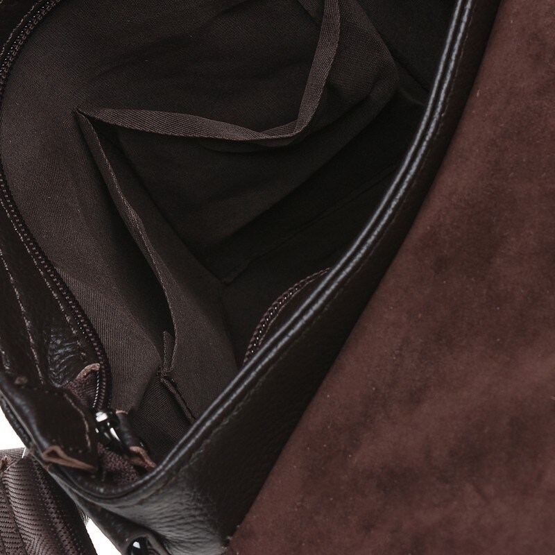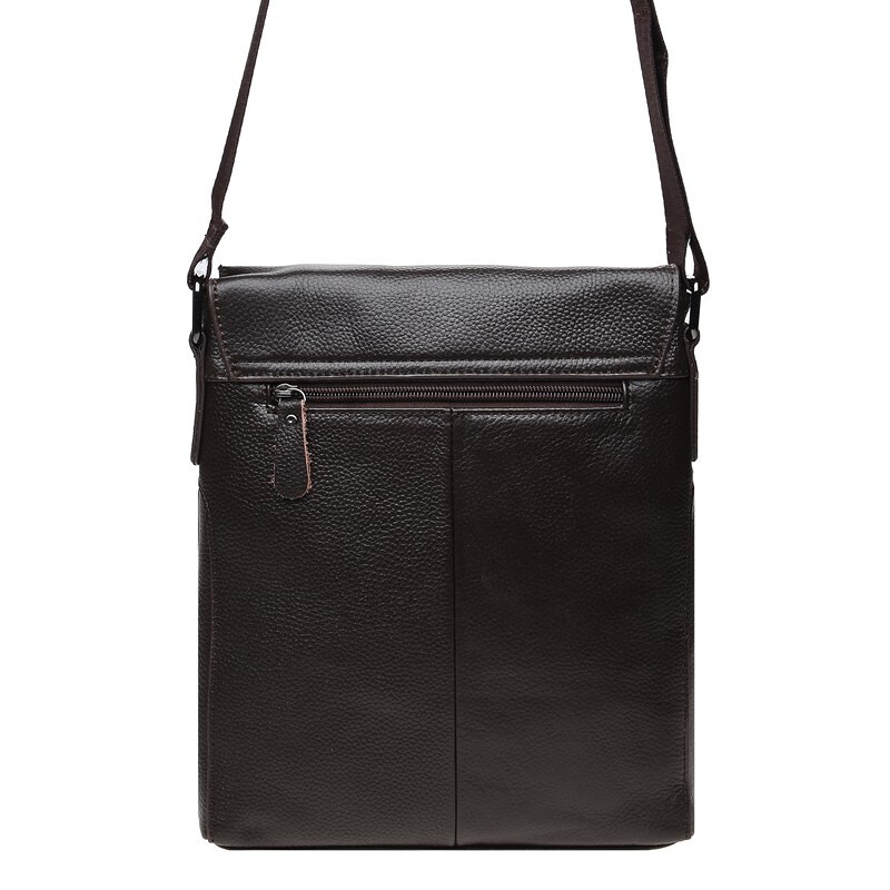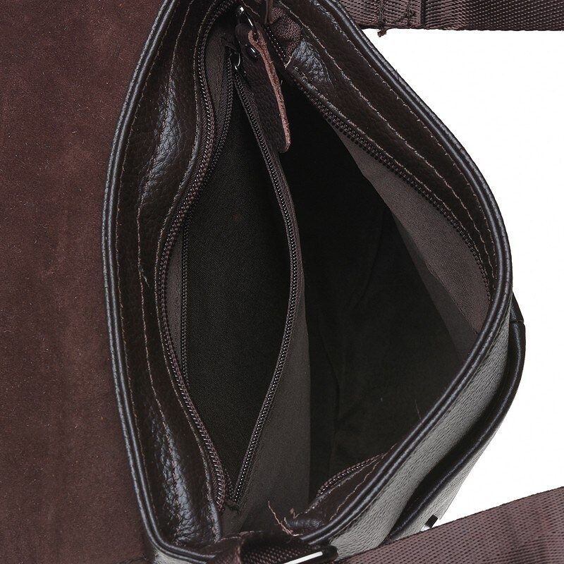Классический вариант мужской кожаной сумки на плечо. Мессенджер больше среднего размера, вместительный и практичный. Закрывается на клапан, имеет 1 основное отделение. Внутри 1 карман на молнии и 2 кармана для мелочей. С лицевой стороны- 1 накладной карман. С тыльной стороны- 1 карман на молнии. Подкладкка- текстиль. Цвет фурнитуры- серебро. Несъемный ремень регулируется по длине.