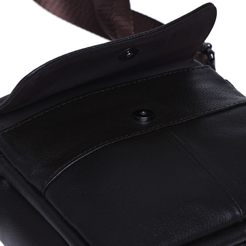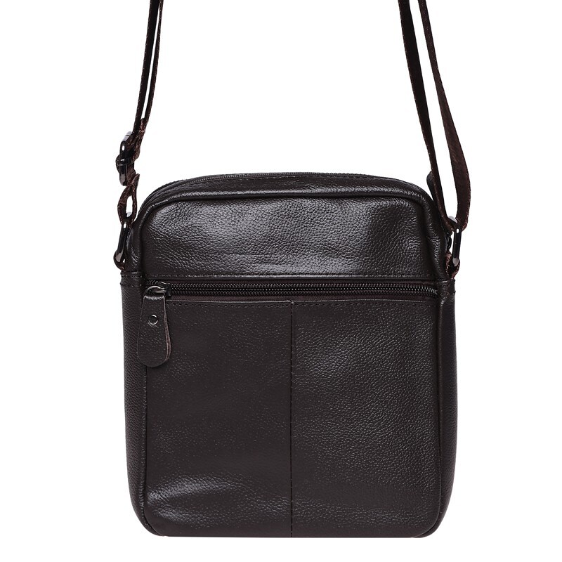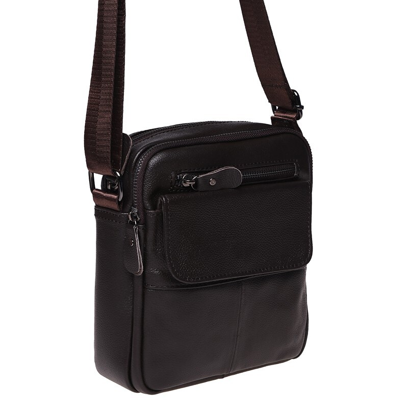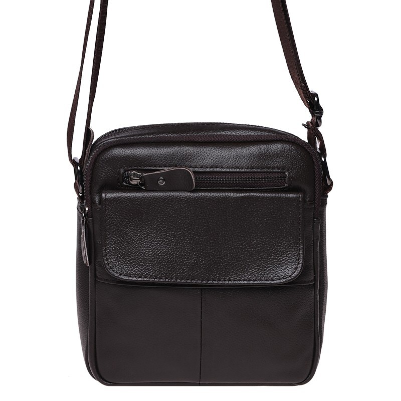 Найти по-настоящему красивую, практичную и качественную мужскую сумку из натуральной кожи бывает нелегко. Но возможно! В этом каталоге представлена идеальная модель, которая станет оптимальным вариантом для ежедневной носки. Такое многофункциональное изделие поместит в себя все необходимые вам вещи, а также станет ярким акцентом вашего стиля, сделает ваш образ завершенным и аккуратным. Достоинства мужской кожаной сумки коричневого цвета: Сумка имеет небольшой размер, однако вы сможете удобно организовать свои вещи и всегда иметь нужные элементы под рукой. Изделие состоит из одного основного отделения, на стенке которого обустроен секретный карманчик, а также двух карманов на передней внешней стороне и кармана на молнии на задней стороне.