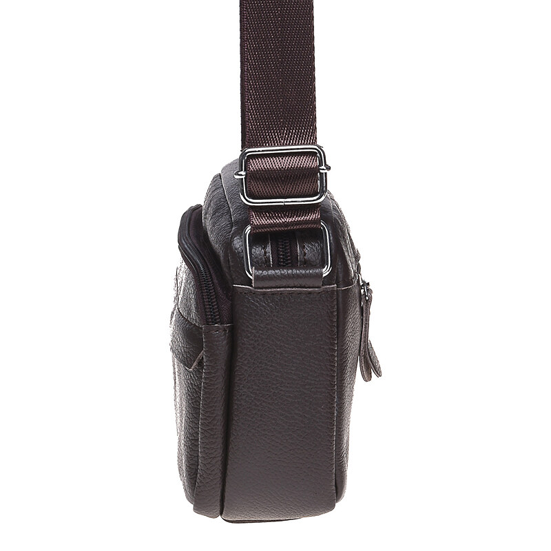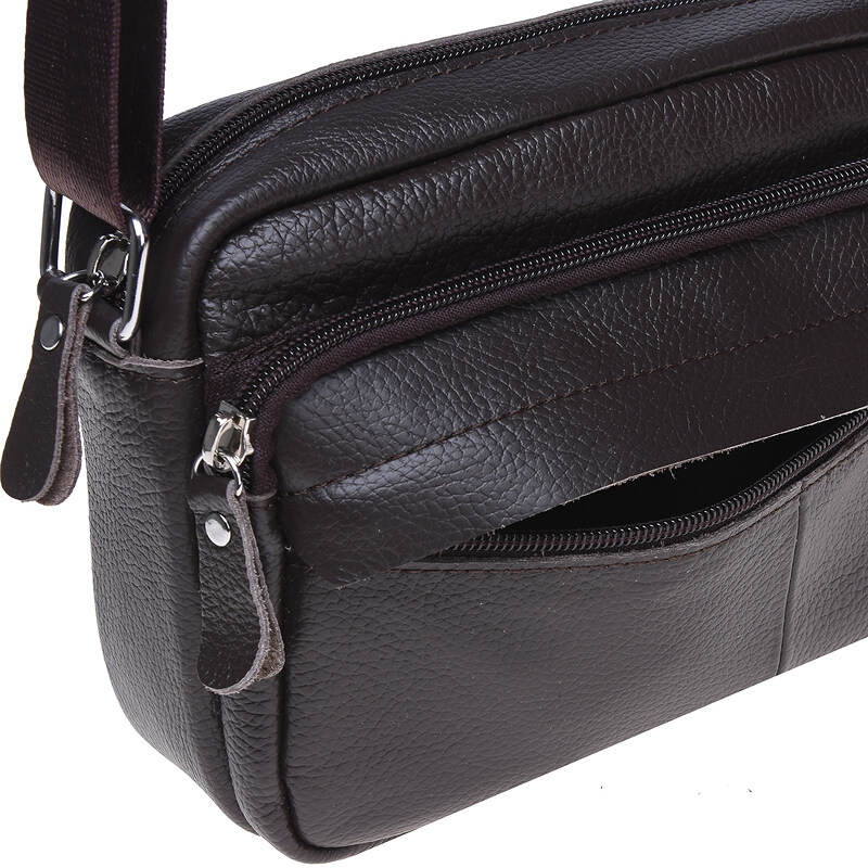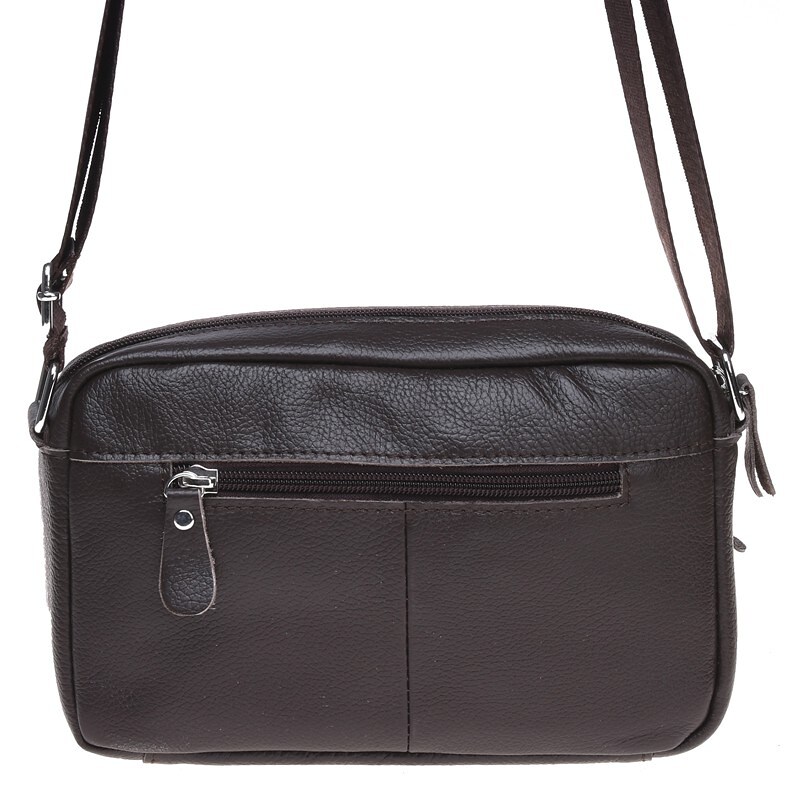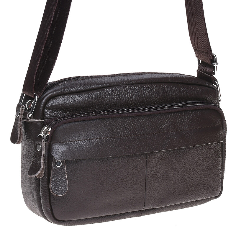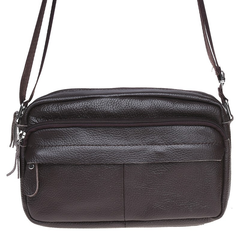 Мужская сумка через плечо из натуральной кожи. Имеет 1 основное отделение и несколько карманов разных размеров, что позволит удобно вместить все нужные вещи. Сумка закрывается на молнию, внутри 1 карман на молнии, с лицевой стороны-1 накладной карман и 1 кармана на молнии.С тыльной стороны- 1 карман на молнии. Подкладка текстиль. Цвет фурнитуры- серебро.