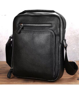 Кожаный мужской мессенджер выполнен из мягкой натуральной кожи. Аристократичный черный цвет подчеркивает статусность владельца. Лаконичный дизайн позволяет использовать аксессуар с повседневной или деловой одеждой. В сумке имеется удобная короткая ручка и текстильный несъемный плечевой ремень, регулируемый по длине. На сумку установлена надежная металлическая фурнитура. Снаружи с лицевой стороны размещены два кармана для хранения личных вещей, к которым необходим быстрый доступ. А в главном отделении можно уместить такие предметы, как планшет, термокружку, блокнот или книгу.