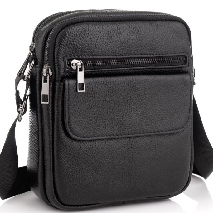 Кожаная мужская сумка через плечо черная Tiding Bag 4134A