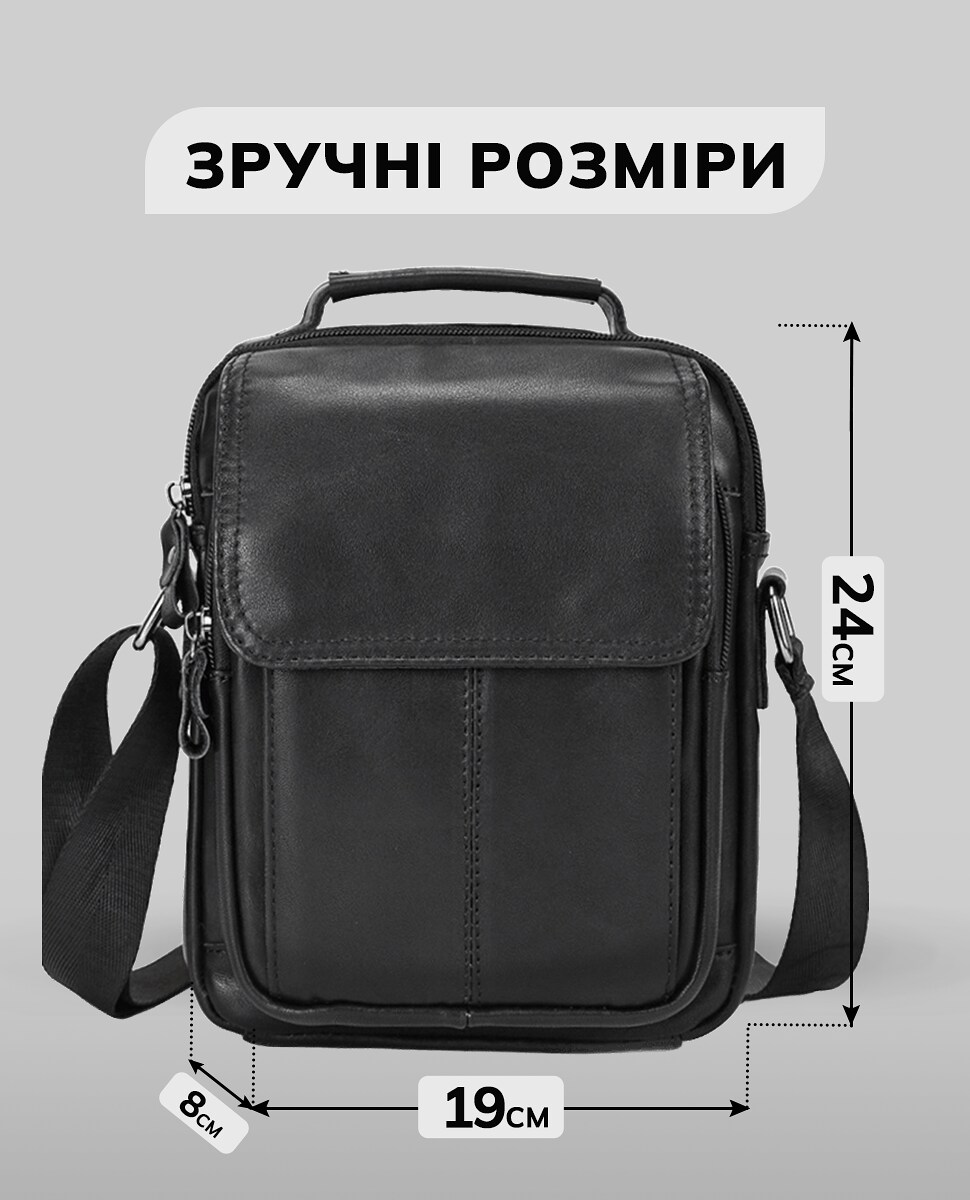 Сумка-барсетка мужская через плечо кожаная гладкая черная Tiding Bag TD-69291