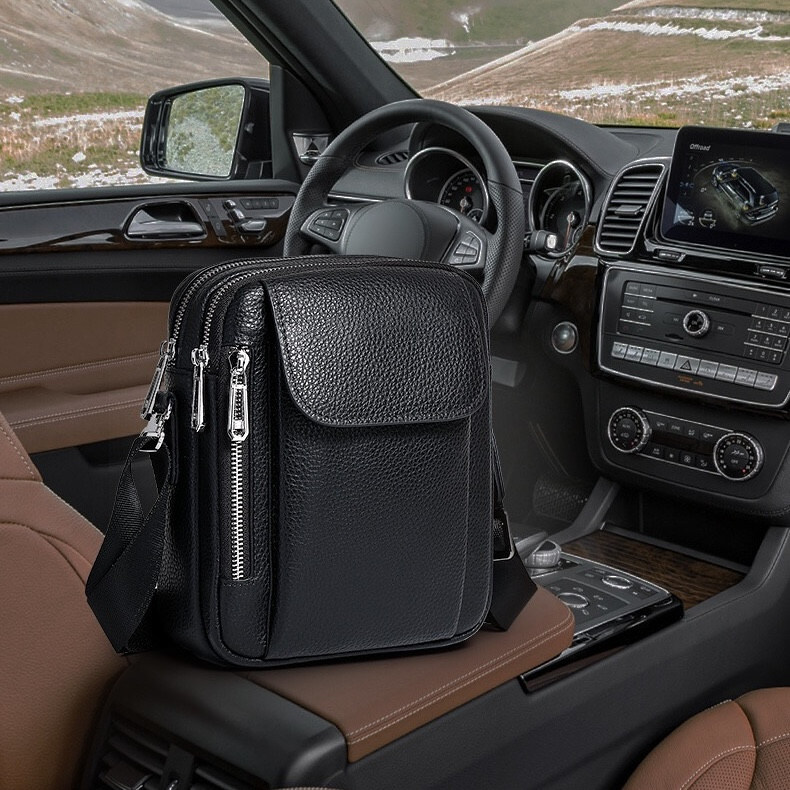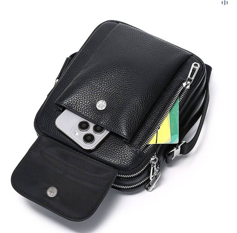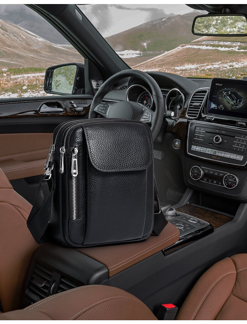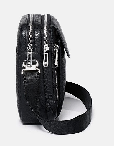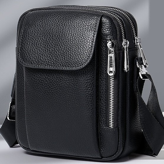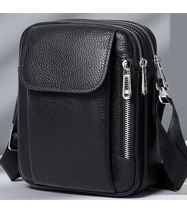 Лаконичная мужская сумка на плечо выполнена из высококачественной натуральной кожи, мягкой на ощупь. Изделие имеет два равномерных основных отделения, внутри которых находятся боковой карман на молнии, а также карман открытого типа. Кроме основных отделений, сумка имеет снаружи также три дополнительных отделения-карманы (с лицевой и тыльной части). Каждое отделение застегивается при помощи качественной фурнитуры. Внутри сумка отделана плотной подкладкой. Ремешок сумки плотный, регулируемый, съёмный, а короткая ручка удобная в руке.