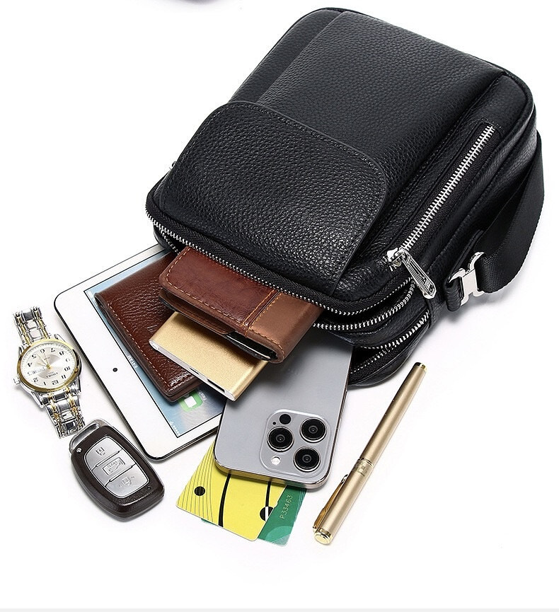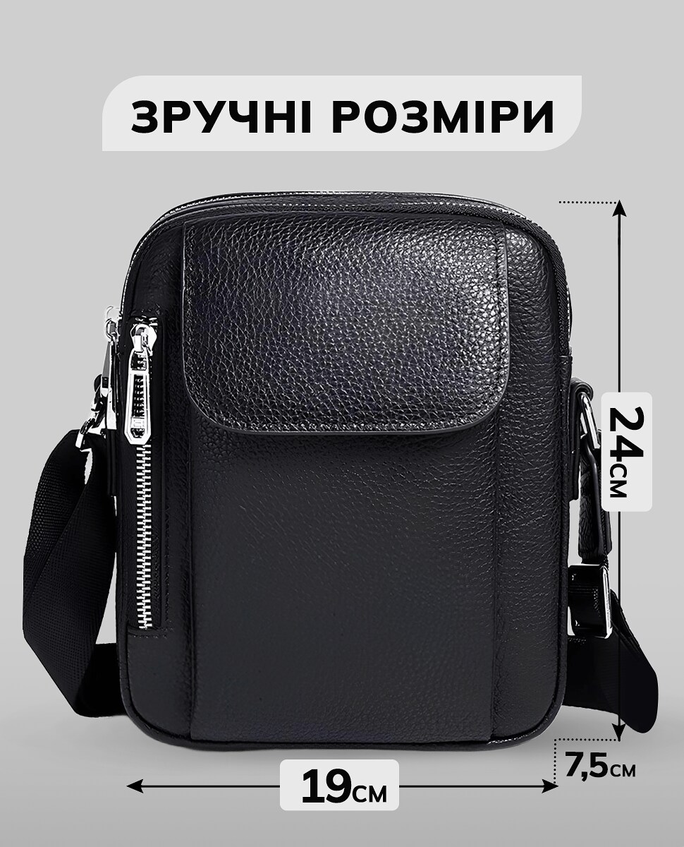 Мужская кожаная сумка-барсетка через плечо черная Bexhill BX-09164