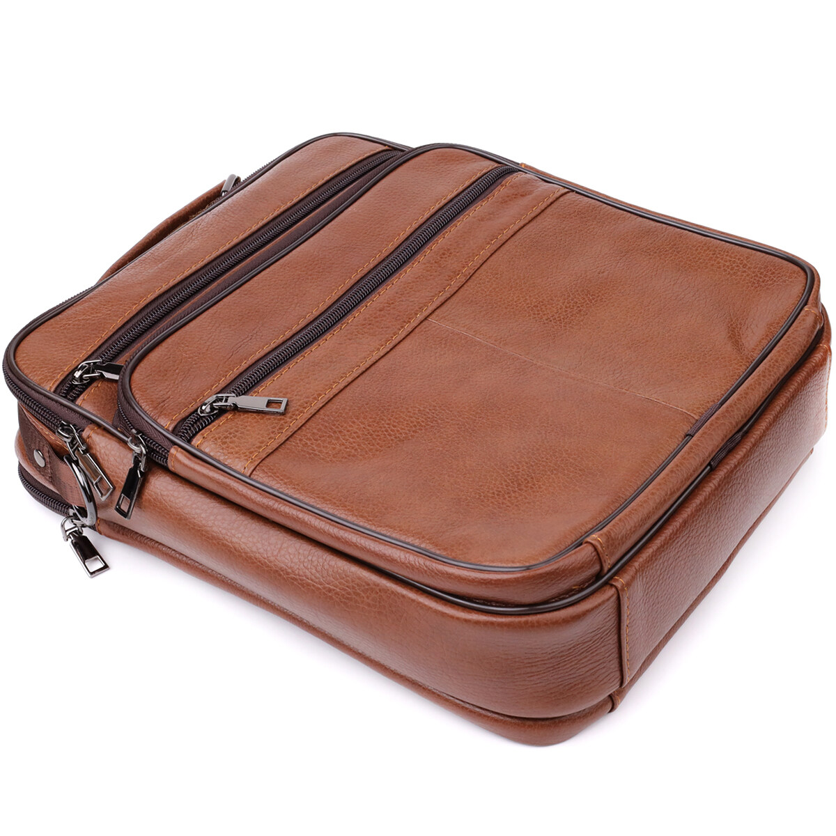 Удобная мужская сумка выполнена из прочной натуральной зернистой кожи флотар, которая отличается выраженной текстурой и высокой износостойкостью. Элегантный внешний вид дополнен фурнитурой цвета серебра, придающей модели сдержанный стиль.