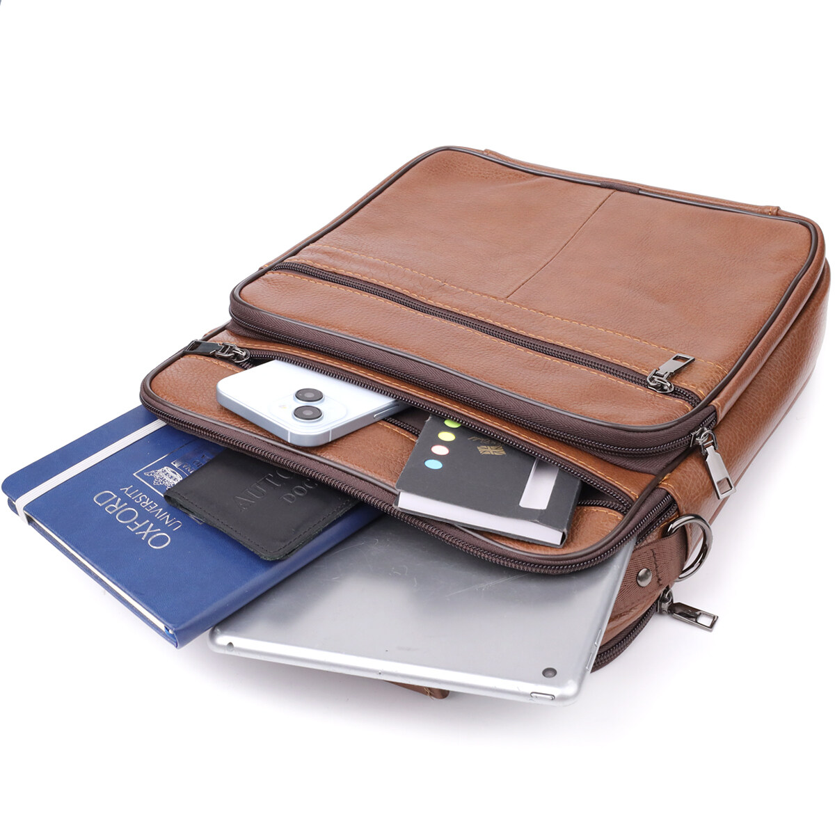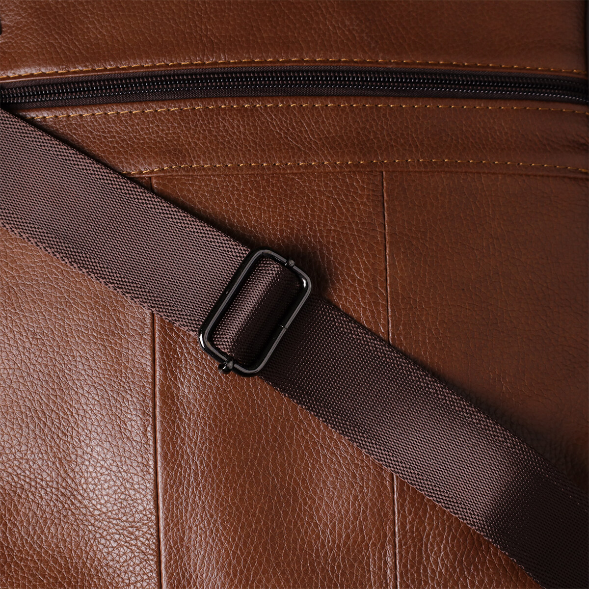 Сумка оснащена кожаной ручкой для переноски в руке и съемным регулируемым текстильным ремешком, который можно настроить по длине и носить сумку через плечо.
