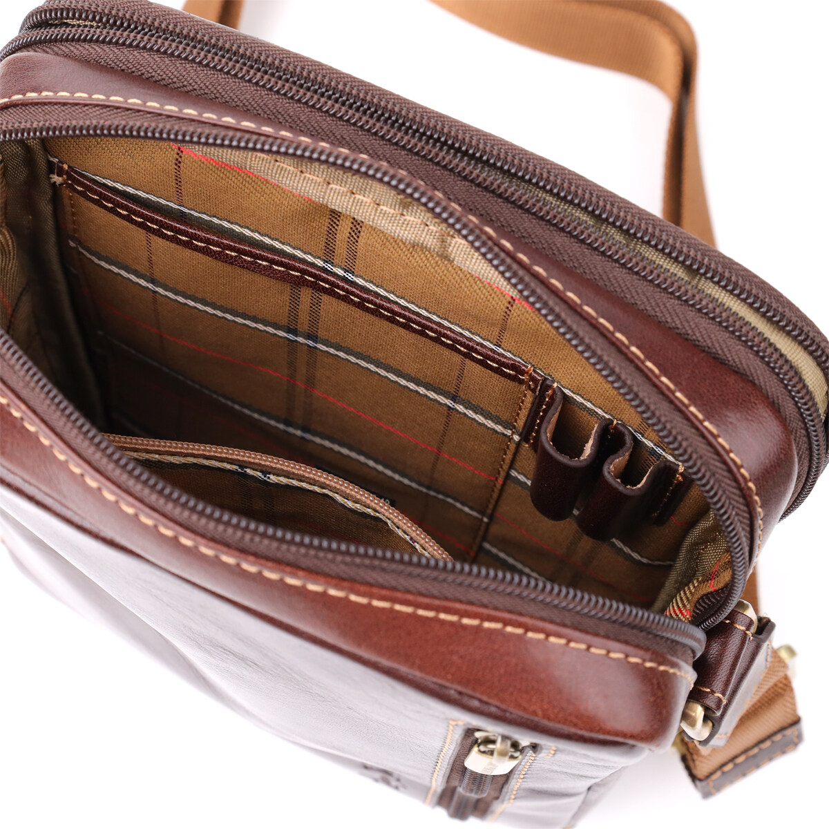 Мужская кожаная сумка от итальянского бренда Tony Perotti — стильный и функциональный аксессуар для повседневного использования. Продуманная организация внутреннего и наружного пространства, брендированный ремень и качественная фурнитура делают сумку удобной и надежной. Тиснение бренда и элегантный дизайн подчеркивают оригинальность и статус владельца, а высокое качество материалов делает изделие идеальным подарком.