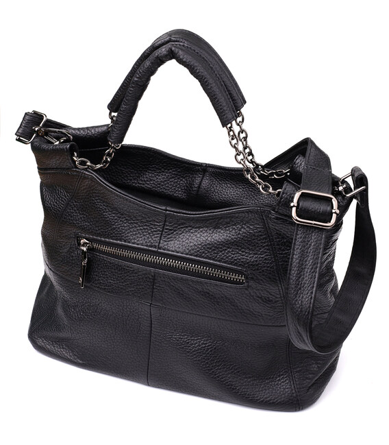 Эта чёрная кожаная сумка от бренда Vintage — идеальный выбор для женщин, которые ценят универсальность, стиль и практичность в одном аксессуаре.