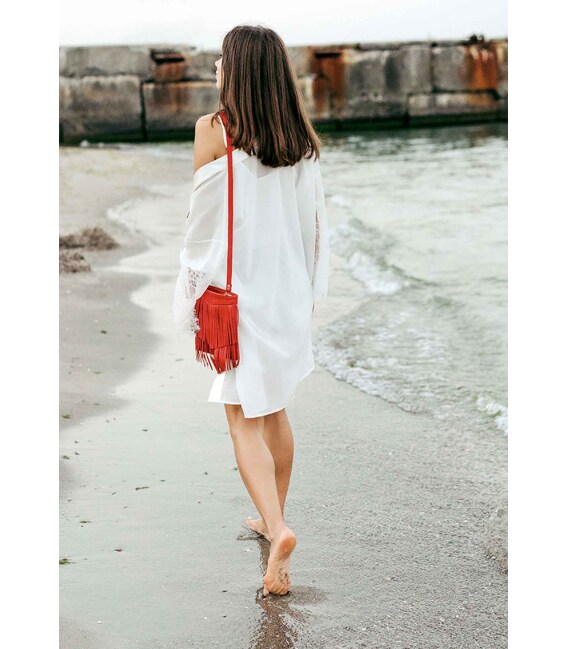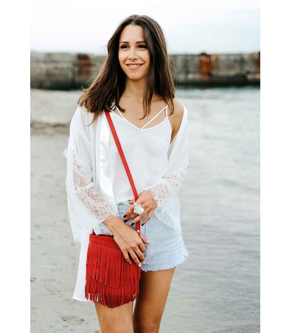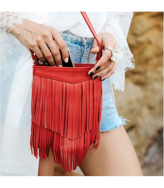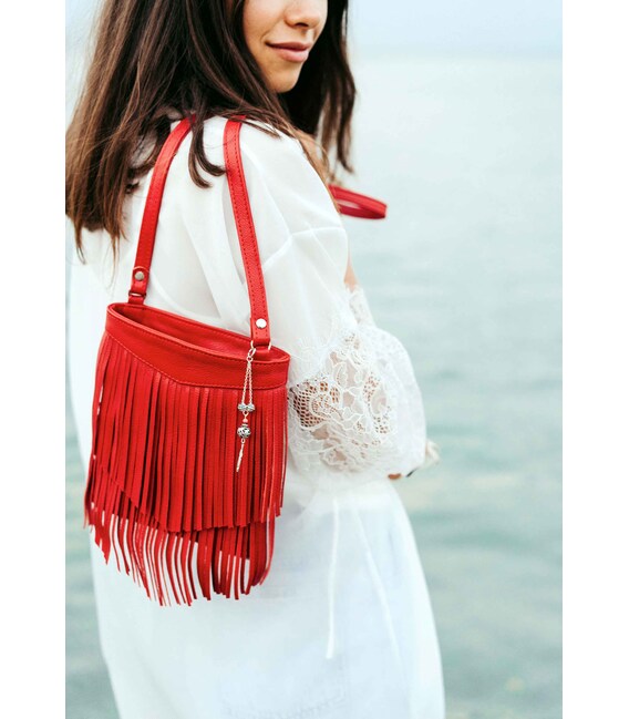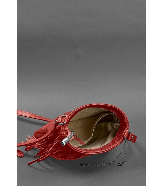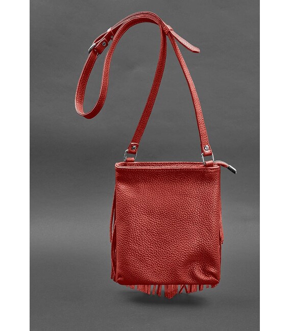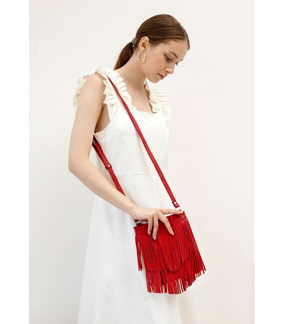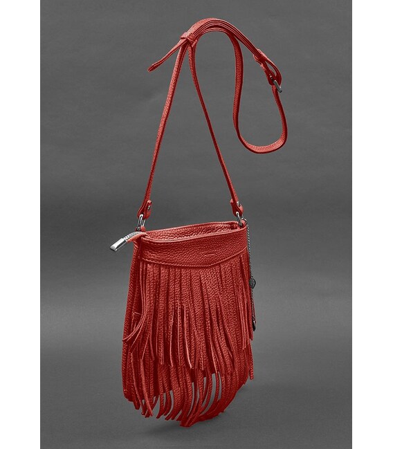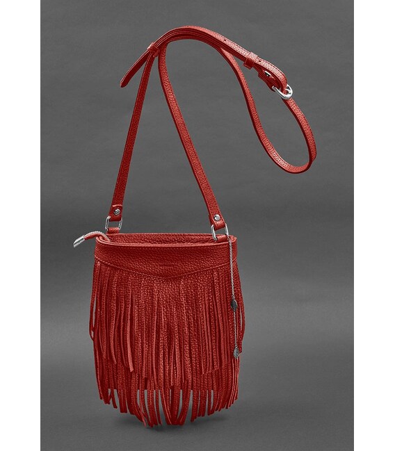 Описание Кожаная женская сумка с бахромой мини-кроссбоди Fleco красная