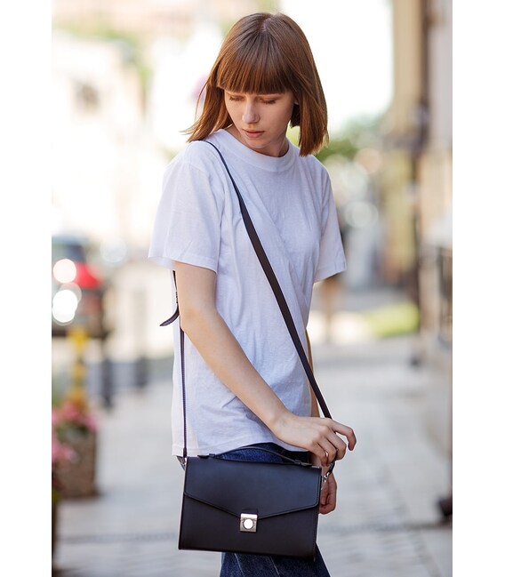 Универсальная черная сумка-кроссбоди Lola будет уместна в деловом и в повседневном городском стиле, а также гармонично дополнит вечерний наряд.Выполнен аксессуар в стильном лаконичном дизайне. Внутреннее пространство сумки разделено отделением на молнии, в котором можно хранить документы небольшого формата или гаджеты. Также есть два небольших кармашка для мелочей внутри аксессуара. И один карман на задней стенке сумки, который закрывается на молнию.Данный аксессуар можно носить, как в руках, так и на плече - с помощью съёмного кожаного ремешка. Длину плечевого ремешка можно легко регулировать, что позволит подогнать сумочку под рост обладательницы.Изготовлена сумка из прочной натуральной кожи полностью вручную. Кожа имеет красивую глянцевую поверхность и хорошо держит форму. Все швы прошиты вручную прочными нитями.Закрывается сумочка на клапан с лаконичным металлическим замком.Внутри сумочки есть удобный держатель для ключей.Сумка упакована в крафтовую коробку.Гарантия на изделие 3 года с момента покупки.Фурнитура и комплектация может быть изменена производителем