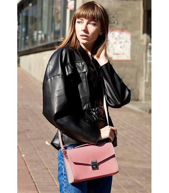 Описание Женская кожаная сумка-кроссбоди Lola розовая