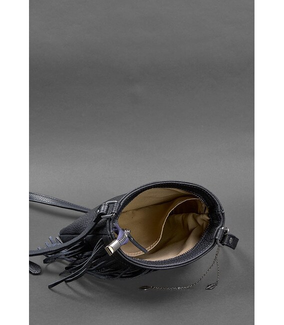 Описание Кожаная женская сумка с бахромой мини-кроссбоди Fleco темно-синяя