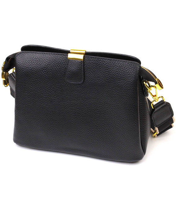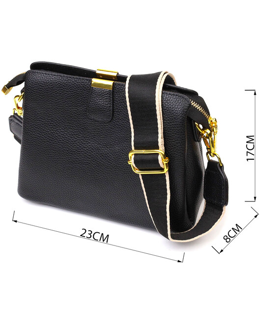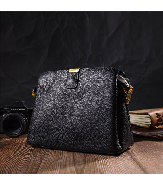 Описание Женская красивая сумка на три отделения из натуральной кожи 22107 Vintage Черная