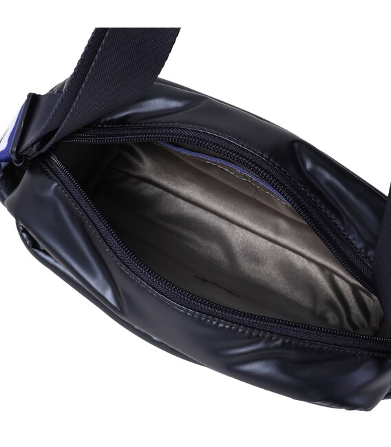 Вместительная, дутая сумка через плечо, освобождает руки и дает возможность быстро воспользоваться предметами первой необходимости в дороге или каждый день. Оснащена тремя отделениями на молнии и боковыми карманами для мелочей с карабином для ключей. В основном отделении 2 небольших кармана и съёмная, водоотталкивающая косметичка на молнии. Выполнена из плотного 100% polyester.