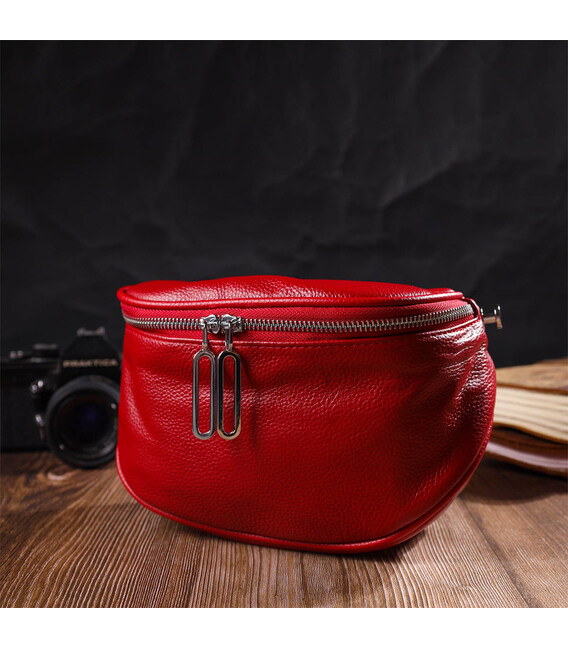 Описание Женская полукруглая сумка через плечо из натуральной кожи 22081 Vintage Красная