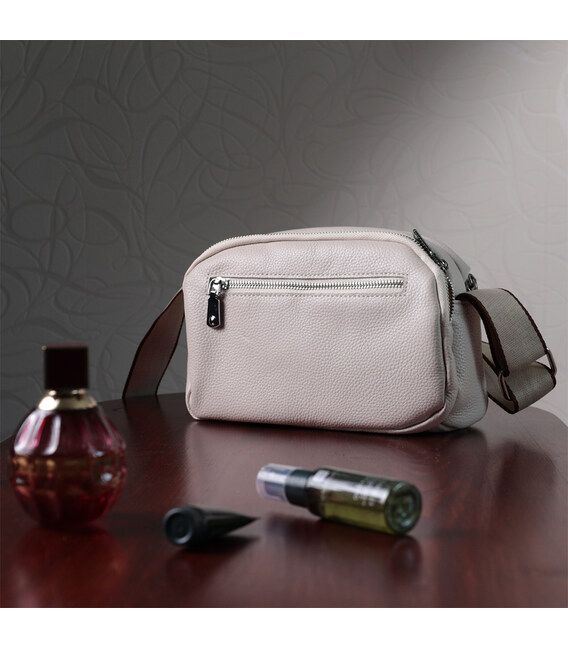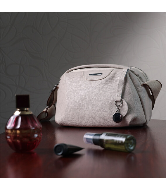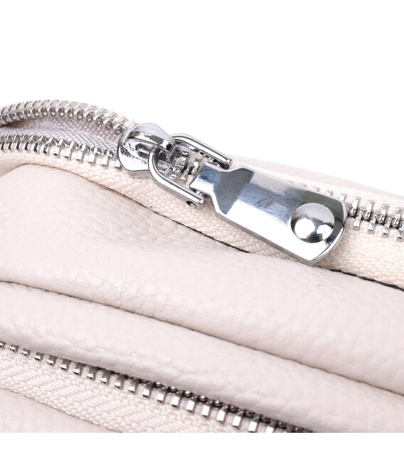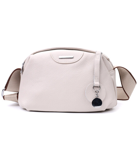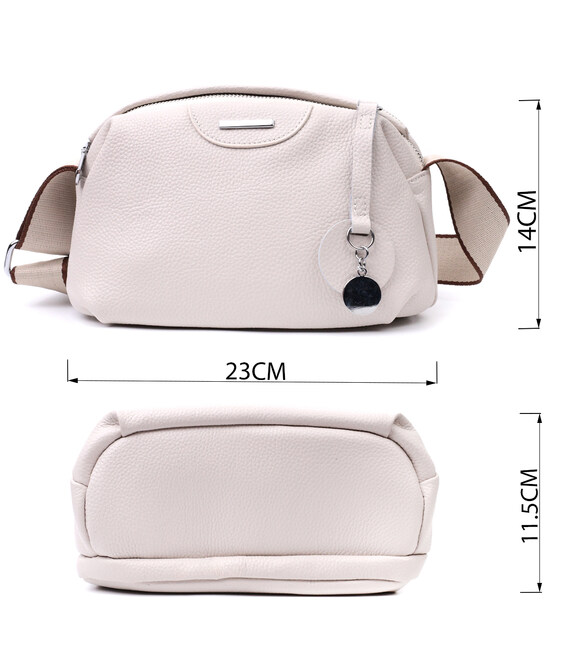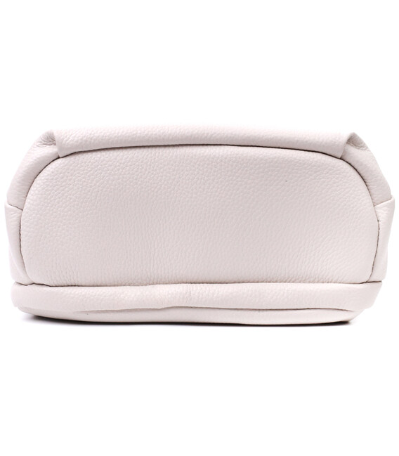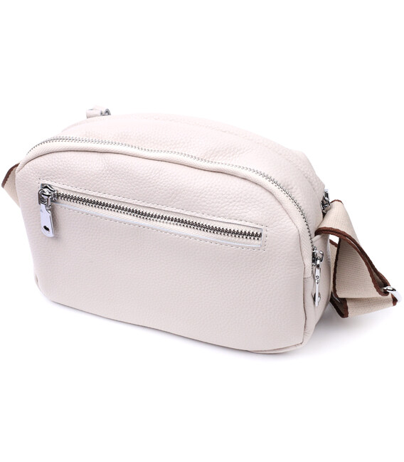 Элегантная сумка для женщин из натуральной кожи флотар, которая имеет зернистую фактуру. В изделии использована кожа белого цвета. Аксессуар состоит из двух отделений, которые закрываются на молнии, потайного кармана на молнии и кармана открытого типа, а также кармана снаружи на тыльной стороне. Изделие имеет твердое дно, что позволяет держать форму. Носить сумку можно в руке, под рукой, на плече и через плечо, для этого имеется текстильный не съемный ремень. В аксессуаре использована качественная фурнитура цвета серебра. Отличный вариант для подарка близким и дорогим девушкам и женщинам.