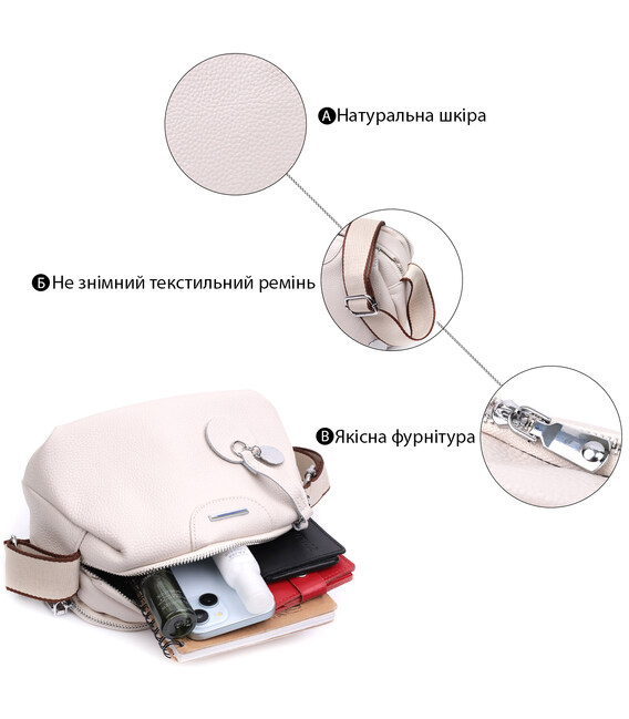 Описание Элегантная сумка на два отделения из натуральной кожи Vintage 22593 Белый