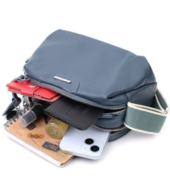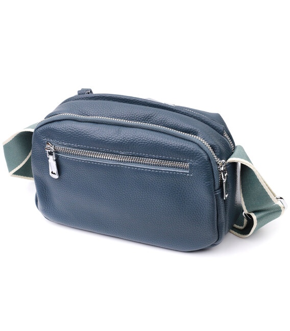 Описание Отменная сумка на каждый день с двумя отделениями из натуральной кожи Vintage 22595 Синяя