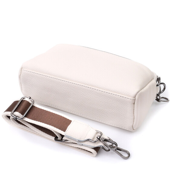 Женская прямоугольная сумка с карманами из натуральной кожи Vintage 22598 Белая
