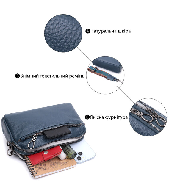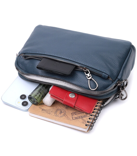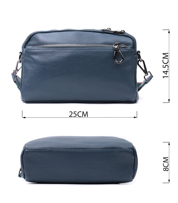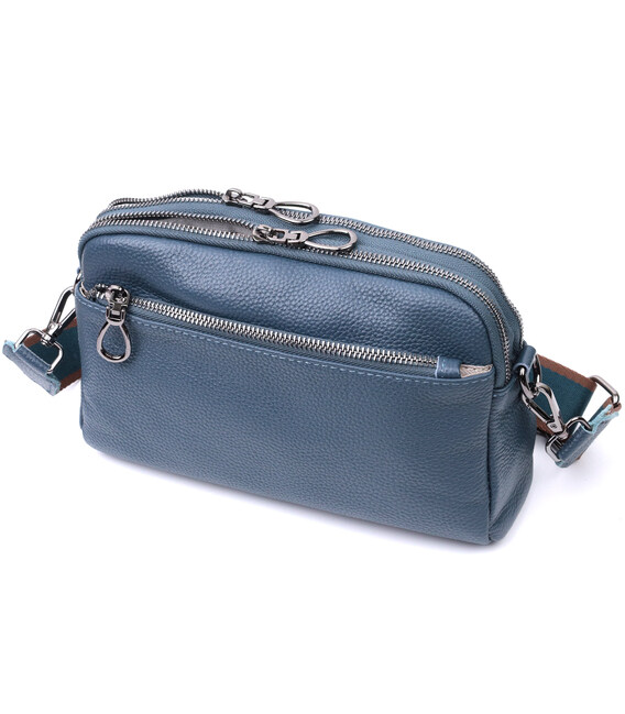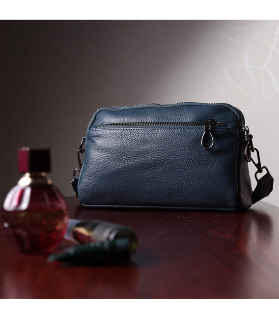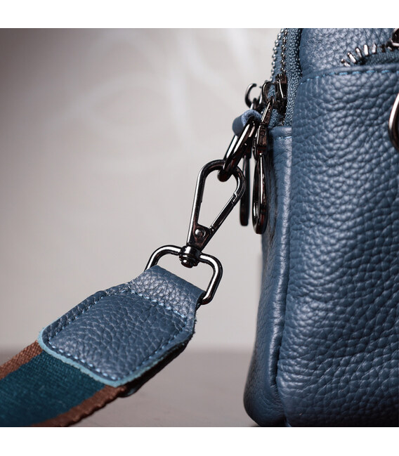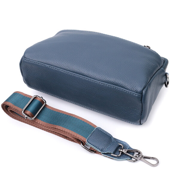 Описание Стильная сумка для женщин с карманами из натуральной кожи Vintage 22600 Синяя