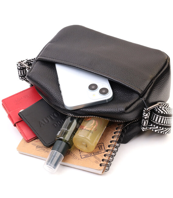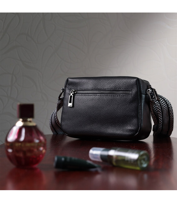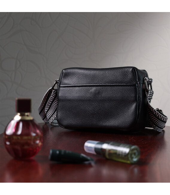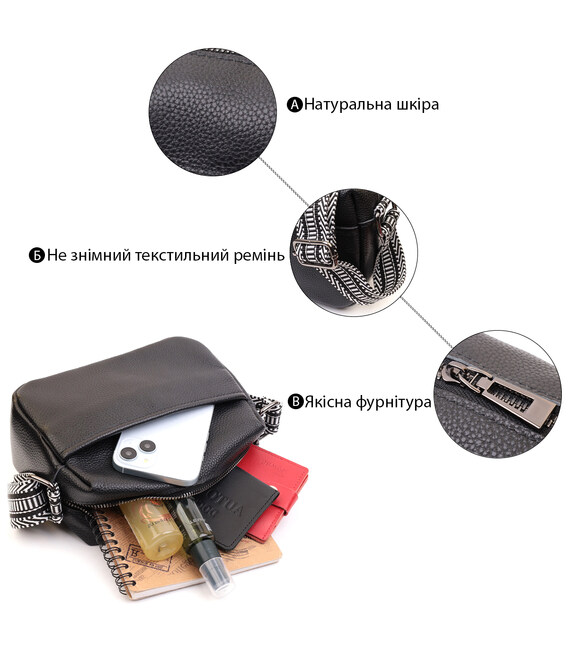 Описание Сумка на одно отделение в классическом цвете из натуральной кожи Vintage 22606 Черная