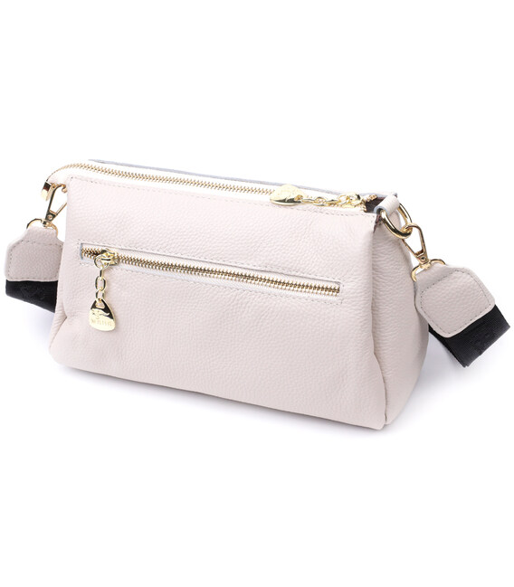 Сумка женская с металлическим украшением посередине из натуральной кожи Vintage 22608 Белая