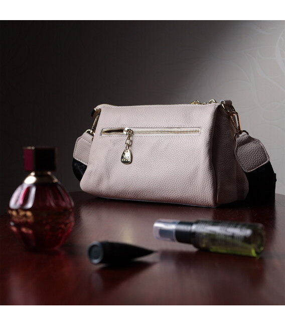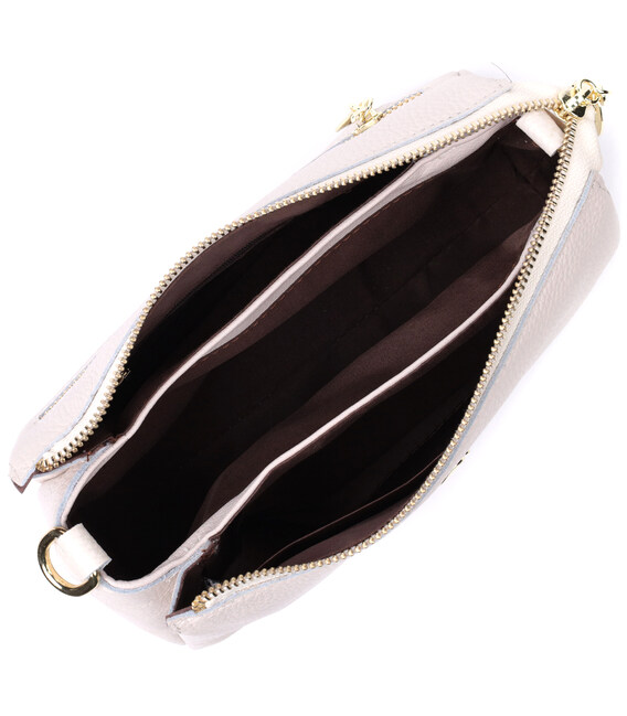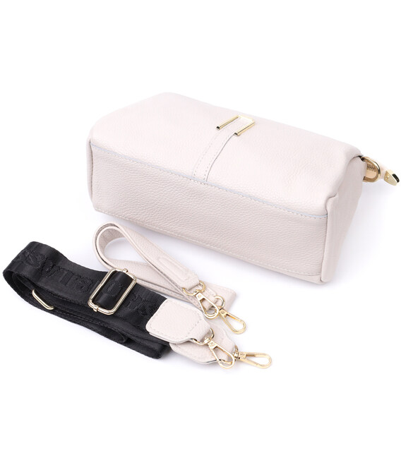 Описание Сумка женская с металлическим украшением посередине из натуральной кожи Vintage 22608 Белая