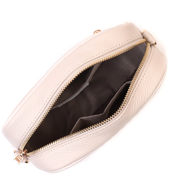 Интересная сумка для женщин на все случаи жизни из натуральной качественной кожи. Аксессуар состоит из основного отделения, которое закрывается на молнию, кармана открытого типа внутри, а также кармана на молнии снаружи на тыльной стороне. Носить сумку можно в руке, под рукой, на плече и через плечо, для этого имеется съемный текстильный ремень. В аксессуаре использована качественная фурнитура цвета золота.