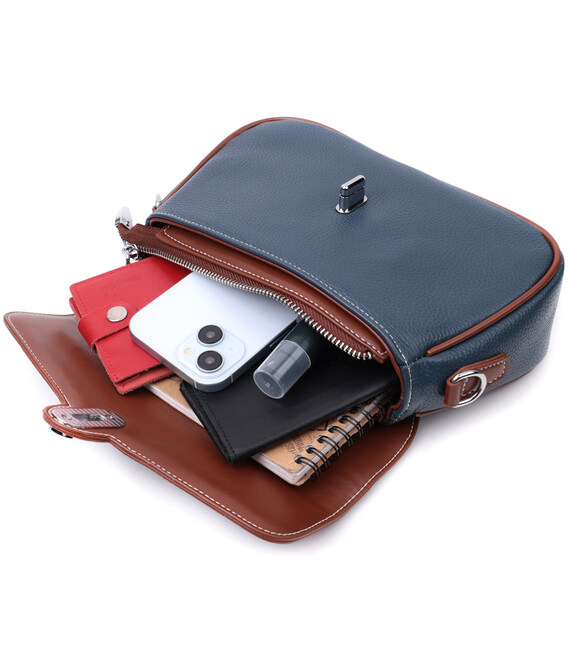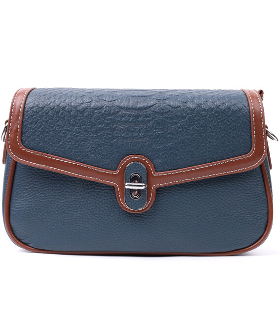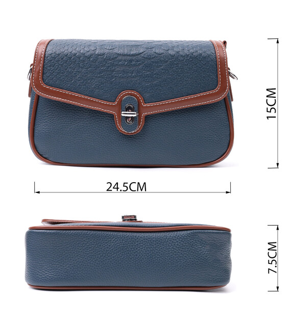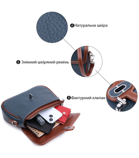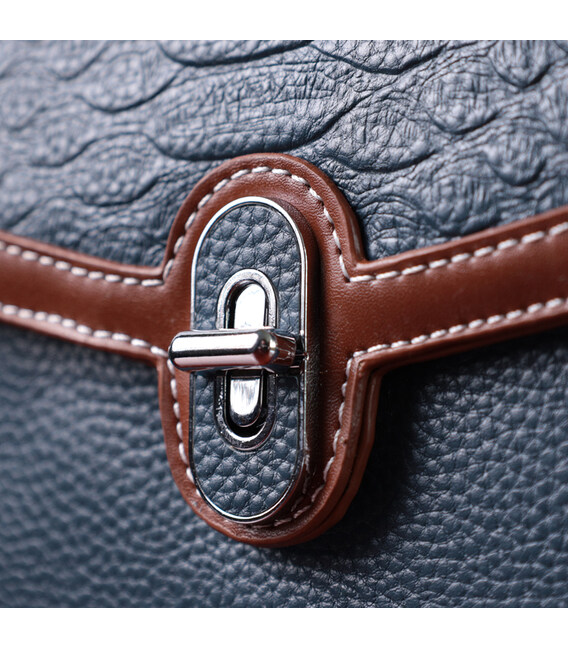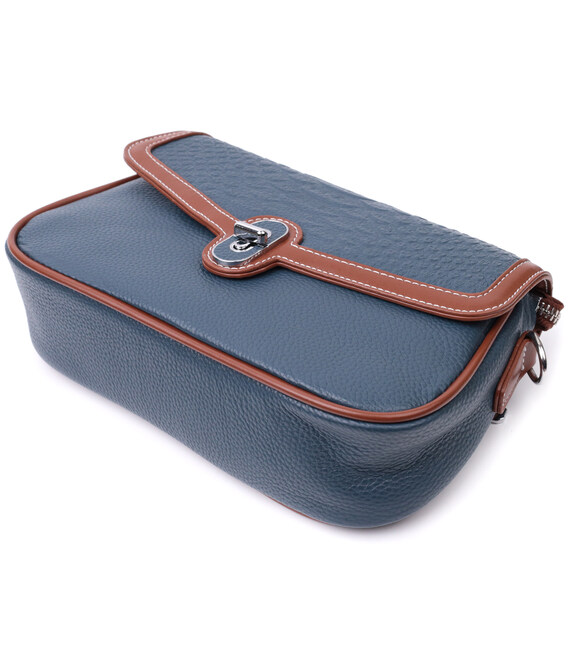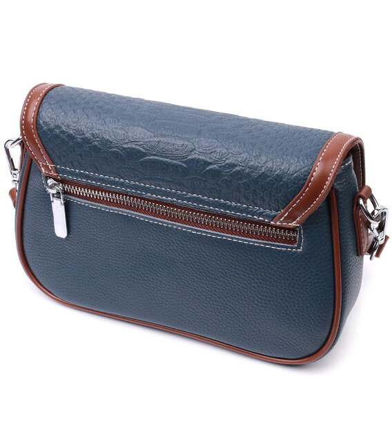 Описание Сумка женская с фактурным клапаном из натуральной кожи Vintage 22622 Синяя