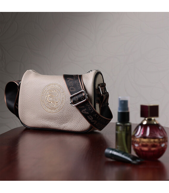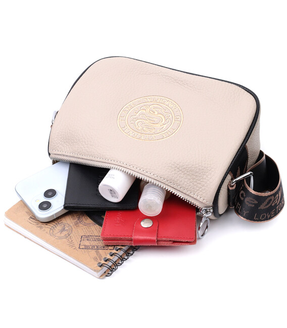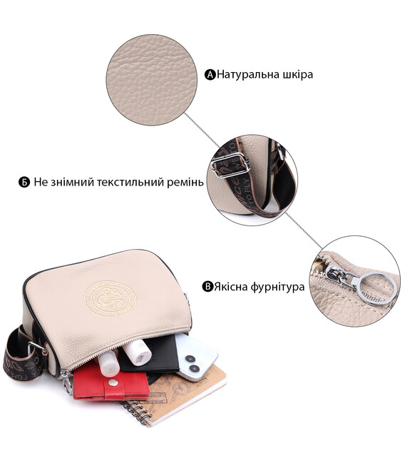 Описание Женская сумка с вышивкой на лицевой стороне из натуральной кожи Vintage 22625 Бежевая