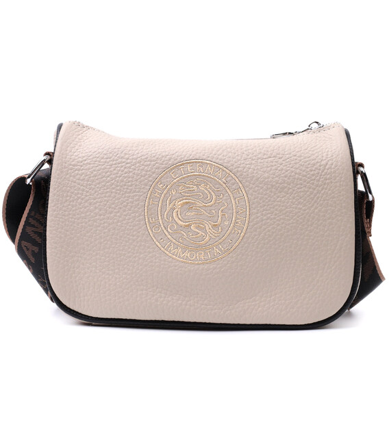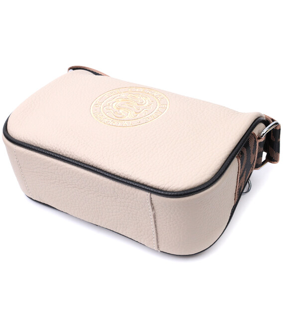 Женская сумка с вышивкой на лицевой стороне из натуральной кожи Vintage 22625 Бежевая