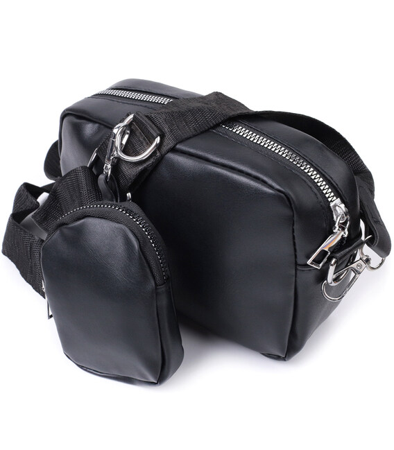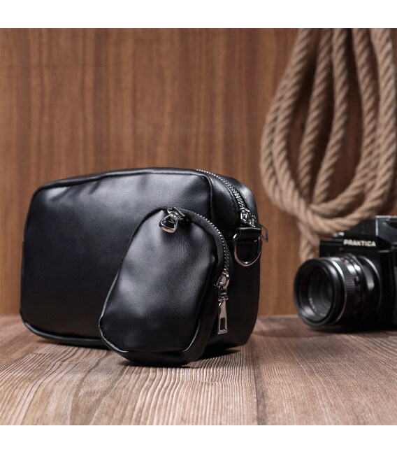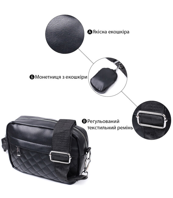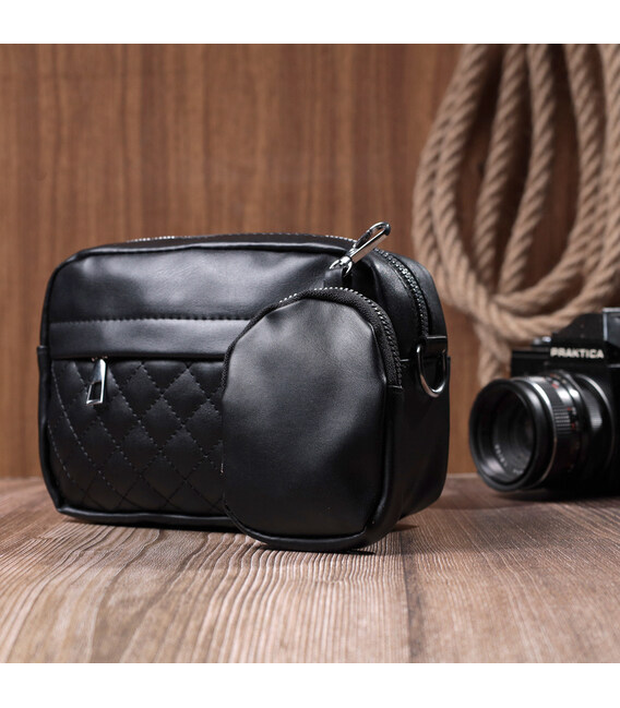 Описание Удобная женская сумка кросс-боди с монетницей из экокожи Vintage 22796 Черный