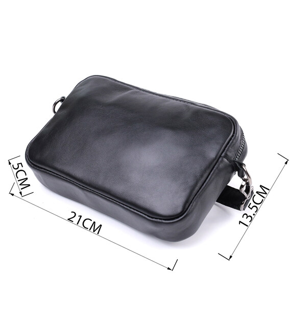 Интересная женская сумка которую можно носить через плечо как кросс-боди, на плече и как клатч в руках, для этого ремешок легко отстегивается. Изделие выполнено в классическом черном цвете из гладкой с глянцевым блеском кожи. Кожа мягкая, приятная на ощупь с высокими показателями износостойкости. Отличный вариант как на каждый день, так и на вечер. Сумка хорошо держит форму, имеет прочную подкладку, фурнитура серебряного цвета - стойкая не меняет свой цвет в процессе носки. Аксессуар отлично сочетается со всеми стилями в одежде и может стать отличным подарком на любой праздник.