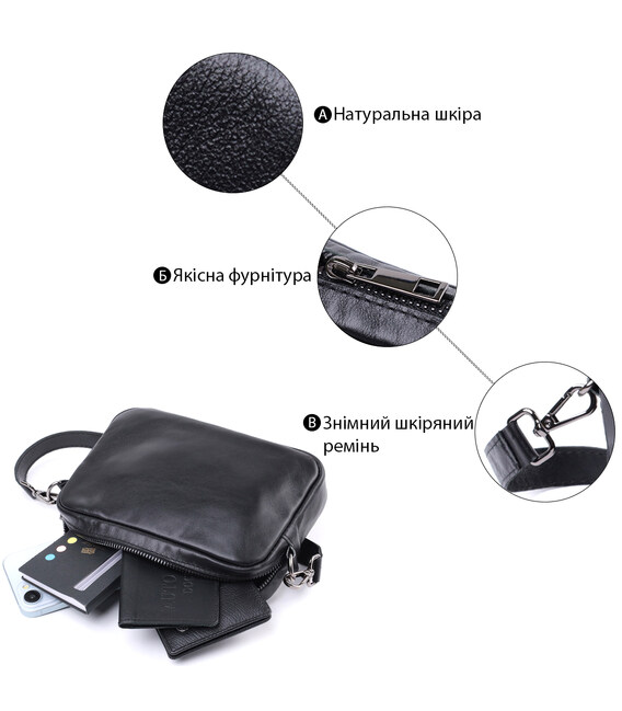 Описание Классическая сумка кросс-боди из гладкой натуральной кожи Shvigel 22841 Черная