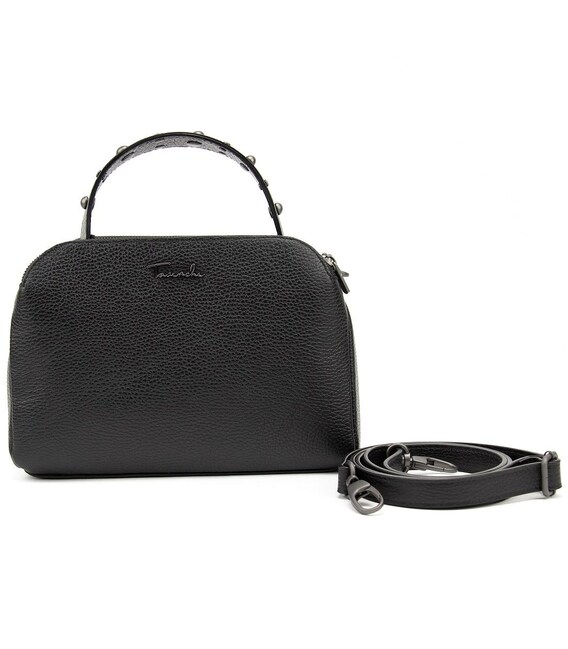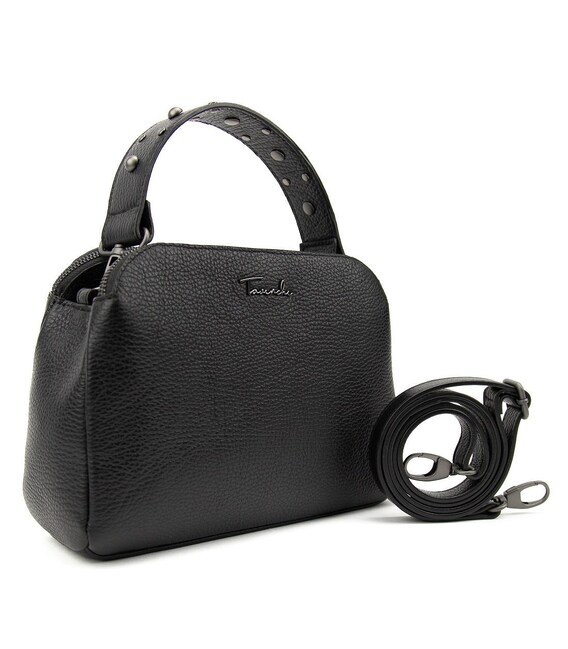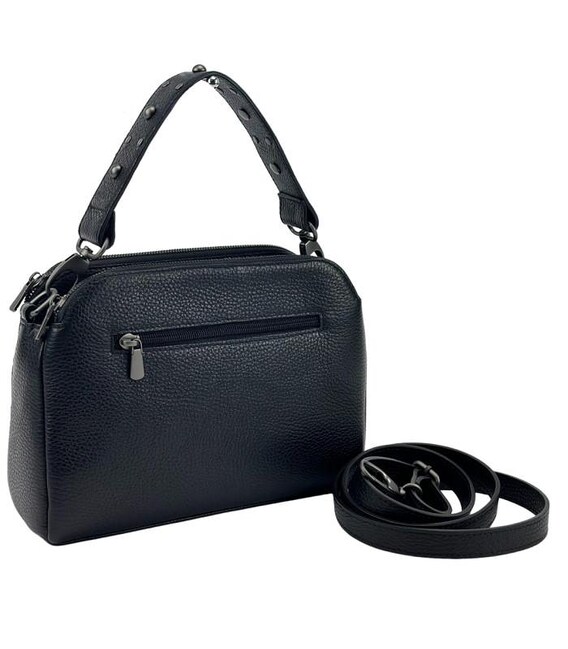 Сумочка кроссбоди из натуральной кожи. Размер: 25 x 18 x 7 см25 x 18 x 7 Модель небольших размеров Есть три отделения с закрытием на молнию каждое. Внутри есть небольшие потайные кармашки на змейке для мелких предметов. Короткая кожаная ручка и наплечный длинный ремешок из кожи регулируется по длине, отстегивается с помощью карабинов. С тыльной стороны горизонтальный карман на молнии Подкладка: текстиль Цвет изделия: черный Цвет фурнитуры: серебро 25 x 18 x 7Нашли эту модель дешевле? Свяжитесь с нами, и мы предложим Вам самую низкую цену в Украине, так как являемся производителем данного товара.