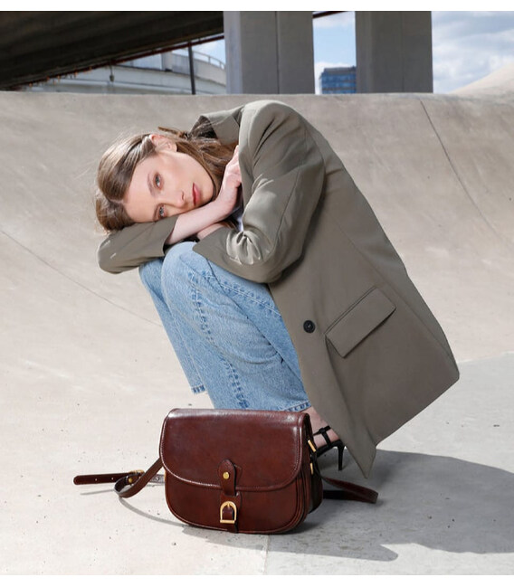 Жіноча шкіряна сумка-сідло - Women In Love - Коричневий колір - Time Resistance 5244701