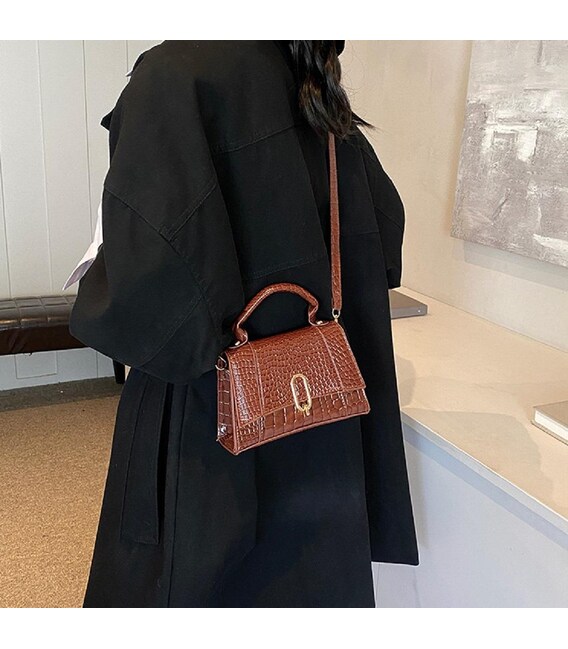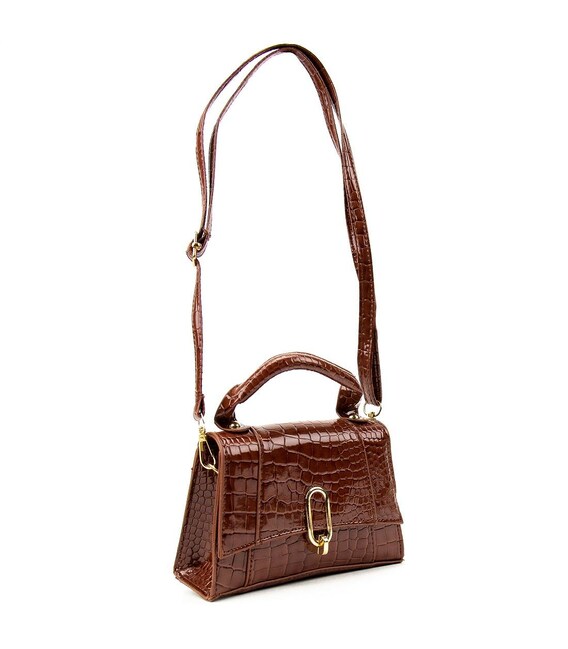 Стильная женская сумка кроссбоди из экокожиОсобенности: размеры 18,5 x 13 x 6 см.Сумка имеет одно основное отделение, которое закрывается клапаном.Наплечный длинный ремешок регулируется по длине, отстегивается с помощью карабинов.Без подкладкиЦвет: коричневыйЦвет фурнитуры: золотоНашли эту модель дешевле? Свяжитесь с нами, и мы предложим Вам самую низкую цену в Украине, потому что производитель этого товара.