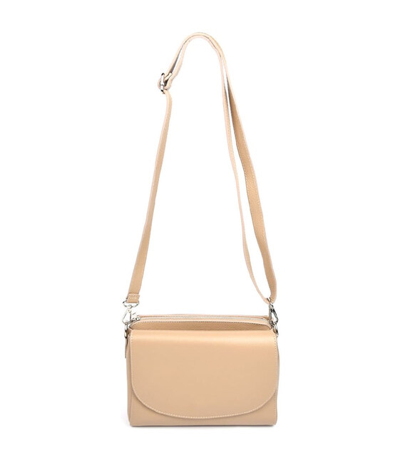 Жіноча шкіряна сумка Firenze (Італія) fz118560 бежева Сумка йде в комплекті зі шкіряним тонким ременем з регулюванням довжини. Всередині бежева тканинна підкладка. Вся фурнітура – металева. Розміри сумки 23*17*9 см