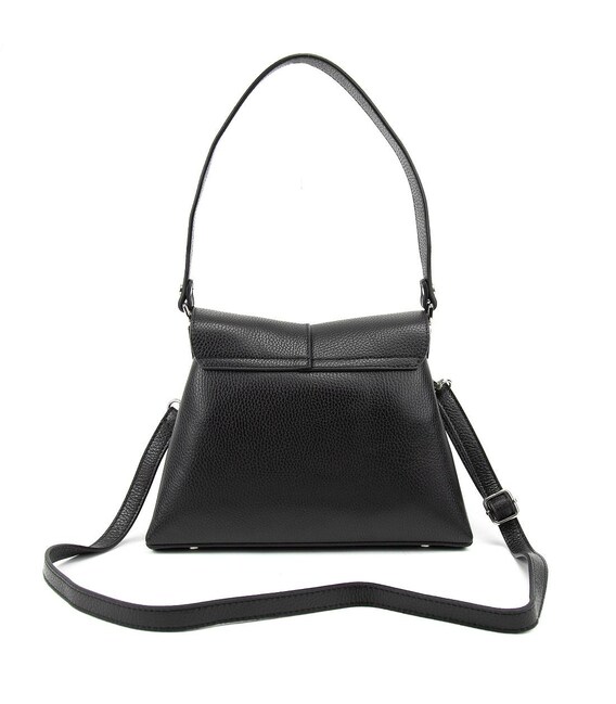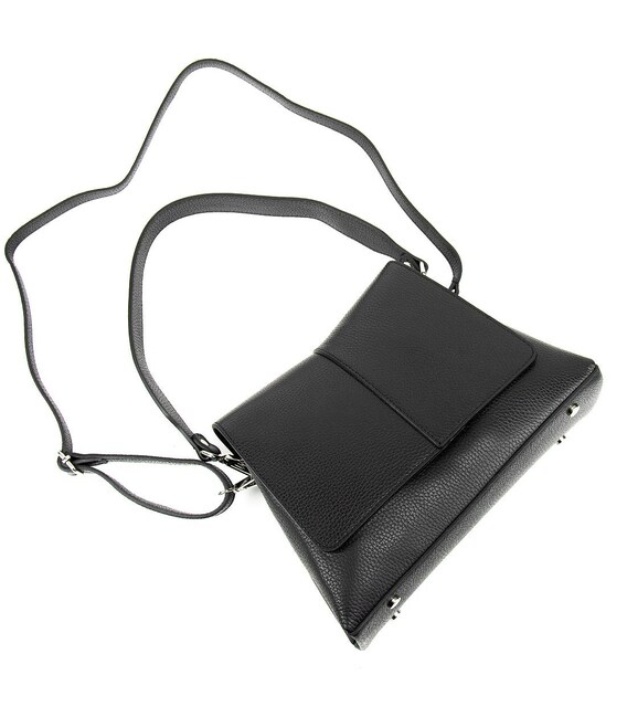 Сумочка черная кроссбоди из натуральной кожи. Размер: 28(19) x 19 x 11 см. Модель маленьких размеров, плотная кожа. Имеет два основных отделения с закрытием на молнию и клапаном на магните. Внутри есть небольшой потайной карманчик на змейке, для мелких предметов. Два ремешка, один короткий, а второй наплечный длинный ремешок из кожи регулируется по длине, отстегивается с помощью карабинов. Подкладка: текстиль Цвет изделия: черный. Цвет фурнитуры: серебро Нашли эту модель дешевле? Свяжитесь с нами, и мы предложим Вам самую низкую цену в Украине, так как являемся производителем данного товара.
