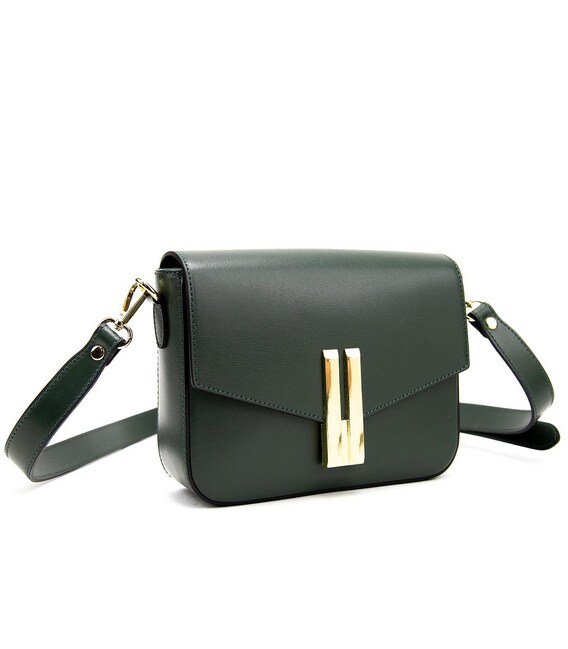 Описание Кроссбоди кожаное с акцентным замком цвет оливка Firenze Italy F-IT-9558OL
