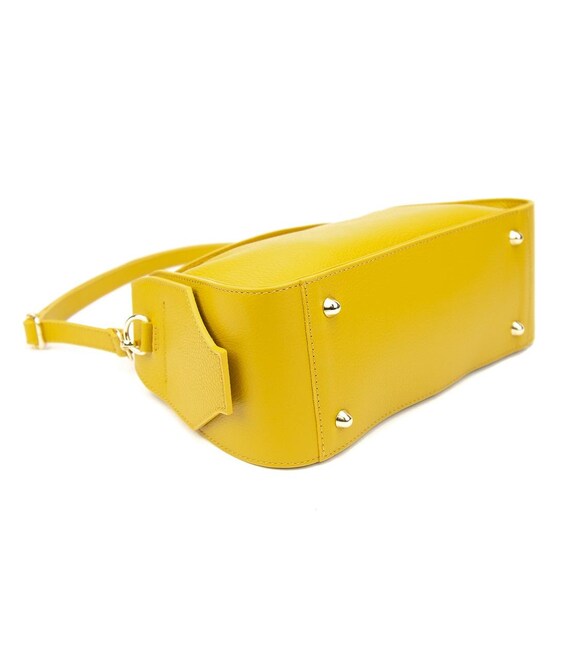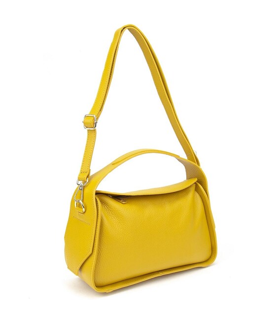 Женская повседневная классическая кожаная сумка кроссбоди через плечо с двумя ручкамиОсобенности: размер 27 см. ширина 25 см. высота по краям сумки 16 см. высота внутри сумки 11 см. глубинаМатериал: натуральная кожа Сумка имеет одно основное отделение, которое закрывается на молнию В комплекте длинный кожаный наплечный ремешок, который регулируется по длине и крепится с помощью карабинов.Подкладка: текстиль Цвет Желтый Цвет фурнитуры: золото Нашли эту модель дешевле? Свяжитесь с нами, и мы предложим Вам самую низкую цену в Украине, так как являемся производителем данного товара.