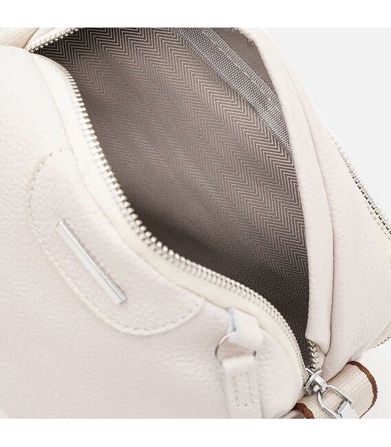 Женская кожаная сумка имеет 2 основных отделения на молнии, с внешней стороны – 1 карман на молнии, внутри сумки – 2 кармана для телефона и других мелочей. Текстиль подкладки. Несъемный текстильный ремень регулируется по длине.