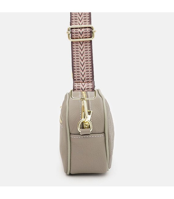 Женская стильная сумка выполнена из прочной натуральной кожи. Закрывается на молнию. Имеет 1 основное отделение, внутри имеется 1 карман на молнии и 1 карман для других мелочей. С тыльной стороны-1 карман на молнии. Подкладка- текстиль. В комплекте съемный плечевой ремень.
