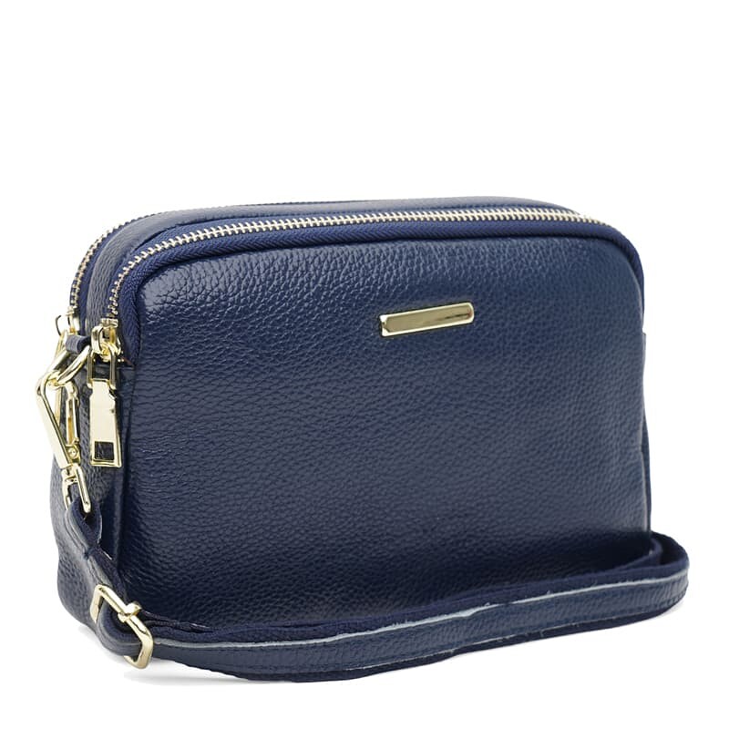 Небольшая и вместительная женская сумочка из натуральной кожи. Сумку можно носить через плечо или как клатч в руках. Имеет 2 отделения на молниях. Внутри 2 кармана на молниях. Подкладка -текстиль. Цвет фурнитуры- золото. Съемный плечевой ремень регулируется по длине.